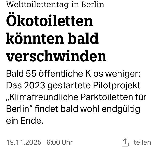 “Öko­toi­let­ten kön­nten bald ver­schwinden. Bald 55 öffentliche Klos weniger…”